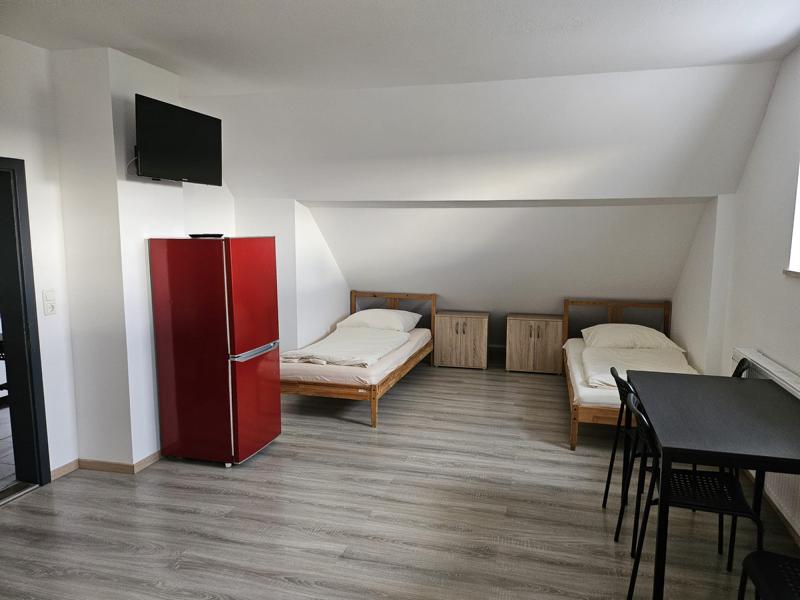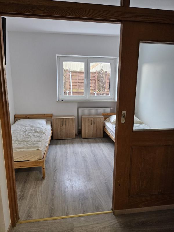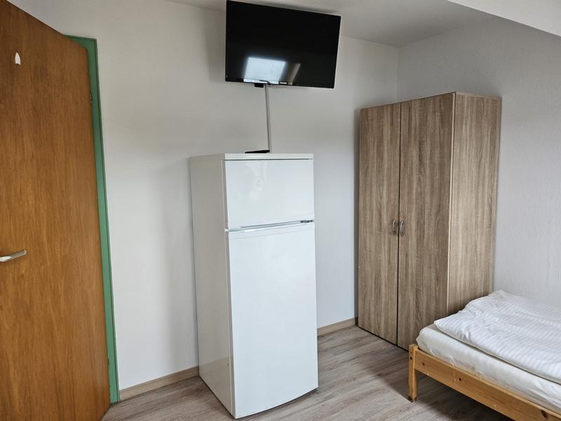 Unsere Unterkünfte Trebur sind immer mit Einzelbetten, Schrank, Tisch, ausreichend Stühlen und je einem Fernseher ausgestattet.